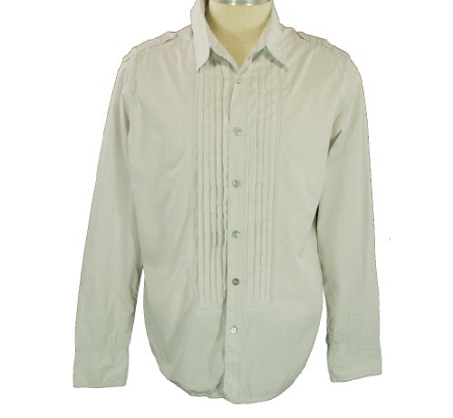 Shirt features a button front with pleated front.
