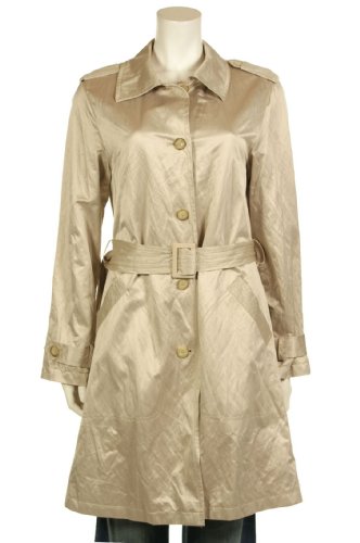 DKNY Women's Champagne Metallic Button Up Belted Trench Coat, Medium Review